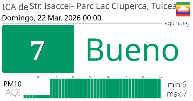 La calidad del aire de Str. Isaccei- Parc Lac Ciuperca, Tulcea, Rumania es Bueno