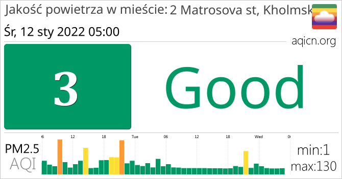 Jakość powietrza w mieście 2 Matrosova st, Kholmsk, Rosja jest Good