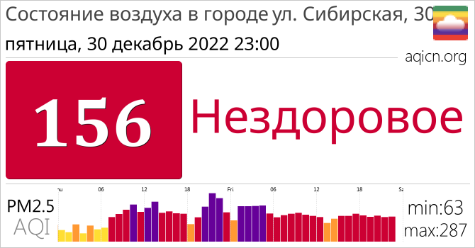 Качество воздуха в ул. Сибирская, 30, Россия является Нездоровое
