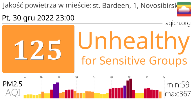 Jakość powietrza w mieście st. Bardeen, 1, Novosibirsk, Rosja jest Unhealthy for Sensitive Groups