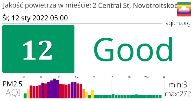 Jakość powietrza w mieście 2 Central St, Novotroitskoe, Rosja jest Good