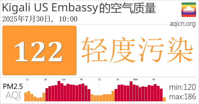 Kigali US Embassy, Rwanda的空气污染指数是轻度污染