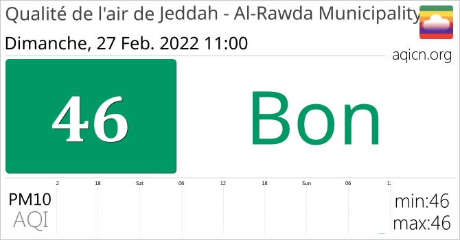 La qualité de l'air à Jeddah - Al-Rawda Municipality, Saudi Arabia est Bon