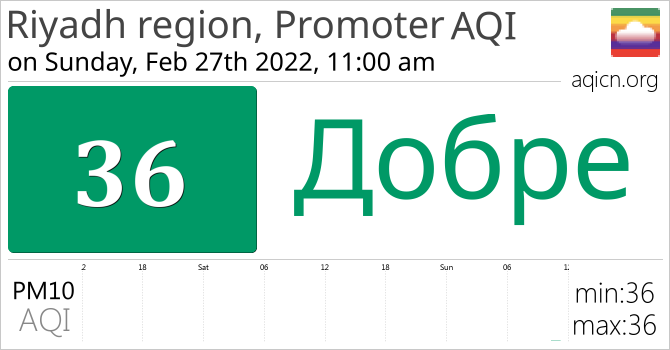 Якість повітря в місті Riyadh region, Promoter, Saudi Arabia становить Добре