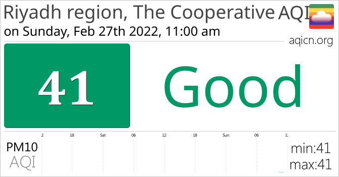 Riyadh region, The Cooperative, Saudi Arabia Air Quality is Good