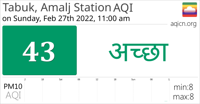 Tabuk, Amalj Station, Saudi Arabia की वायु गुणवत्ता अच्छा है