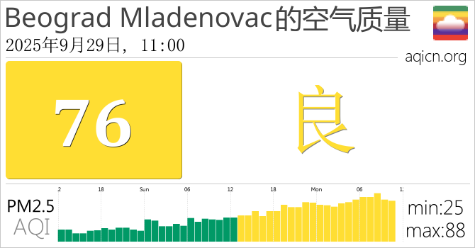 Beograd Mladenovac, 塞尔维亚的空气污染指数是良