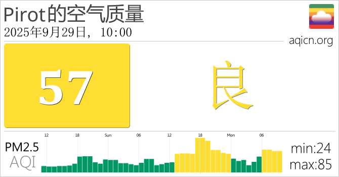 Pirot, 塞尔维亚的空气污染指数是良