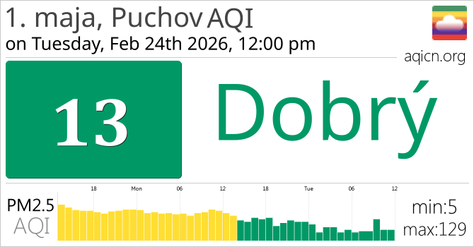Kvalita ovzduší ve městě 1. maja, Puchov, Slovakia je Dobrý
