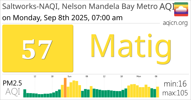 De luchtkwaliteit van Saltworks-NAQI, Nelson Mandela Bay Metro, South Africa is Matig