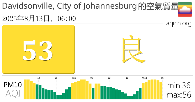 Davidsonville, City of Johannesburg, 南非的空氣污染指數是良