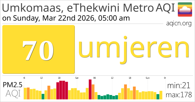Kvaliteta zraka u gradu Umkomaas, eThekwini Metro, South Africa je umjeren