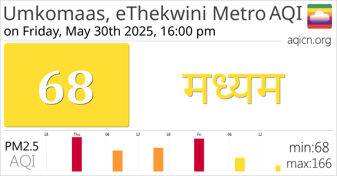 Umkomaas, eThekwini Metro, South Africa की वायु गुणवत्ता मध्यम है