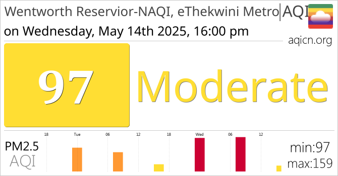 Wentworth Reservior-NAQI, eThekwini Metro, South Africa Air Quality is Moderate