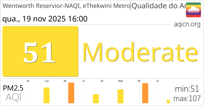 A qualidade do ar em Wentworth Reservior-NAQI, eThekwini Metro, África do Sul é Moderate