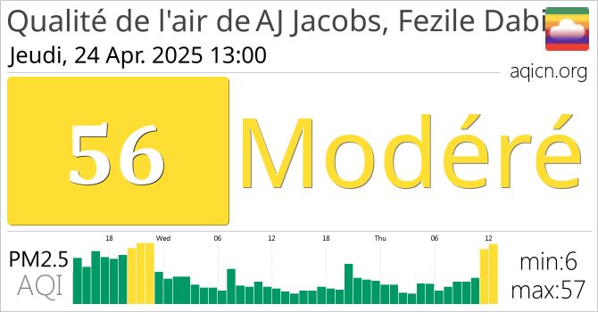 La qualité de l'air à AJ Jacobs, Fezile Dabi, Afrique du Sud est Modéré