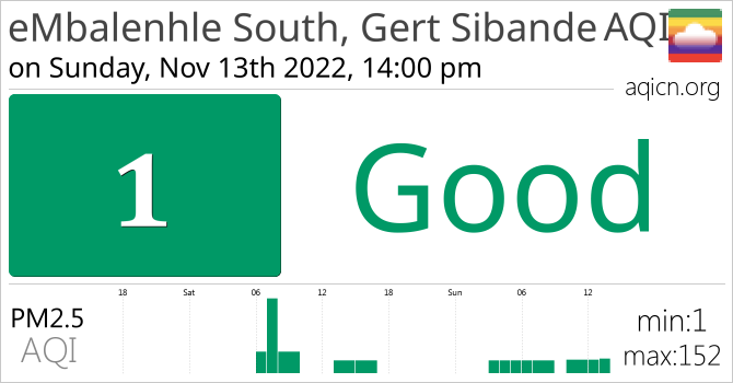 eMbalenhle South, Gert Sibande, South Africa Air Quality is Good