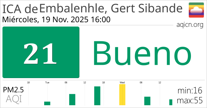 La calidad del aire de Embalenhle, Gert Sibande, Sudáfrica es Bueno