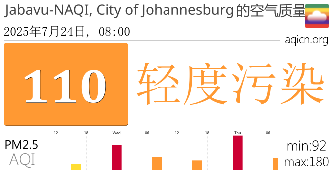 Jabavu-NAQI, City of Johannesburg, 南非的空气污染指数是轻度污染
