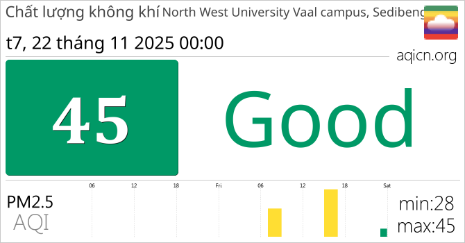 Chất lượng không khí North West University Vaal campus, Sedibeng, South Africa Good