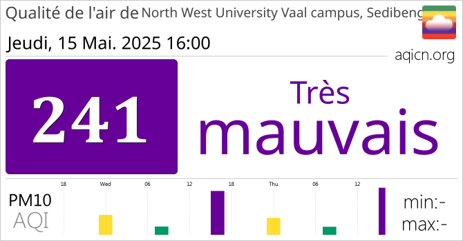La qualité de l'air à North West University Vaal campus, Sedibeng, Afrique du Sud est Très mauvais
