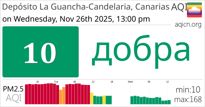 Якасць паветра ў Depósito La Guancha-Candelaria, Canarias, Spain складае добра