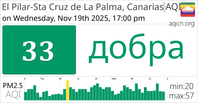 Якасць паветра ў El Pilar-Sta Cruz de La Palma, Canarias, Spain складае добра
