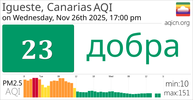 Якасць паветра ў Igueste, Canarias, Spain складае добра