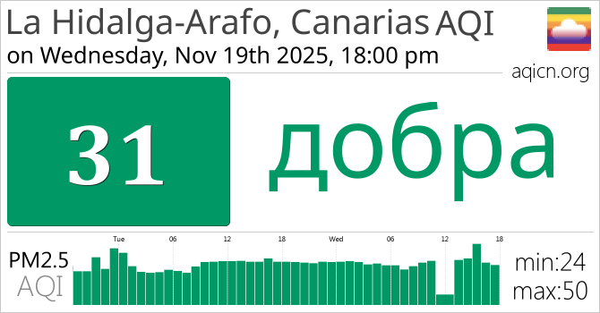 Якасць паветра ў La Hidalga-Arafo, Canarias, Spain складае добра