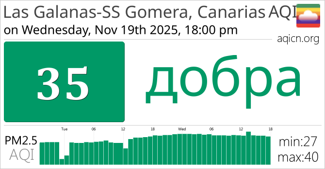 Якасць паветра ў Las Galanas-SS Gomera, Canarias, Spain складае добра