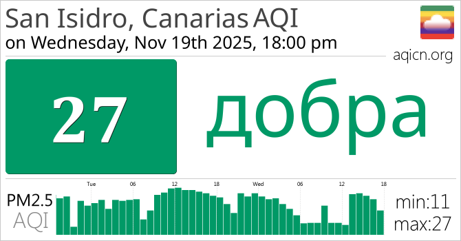 Якасць паветра ў San Isidro, Canarias, Spain складае добра