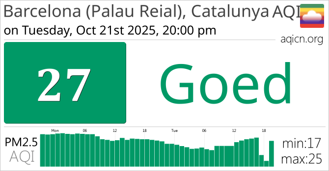 De luchtkwaliteit van Barcelona (Palau Reial), Catalunya, Spain is Goed