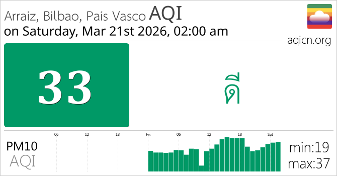 คุณภาพอากาศของ Arraiz, Bilbao, País Vasco, Spain อยู่ที่ ดี