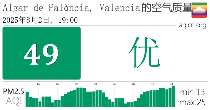 Algar de Palància, Valencia, 西班牙的空气污染指数是优