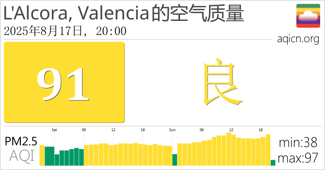 L'Alcora, Valencia, 西班牙的空气污染指数是良