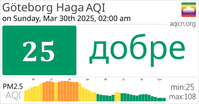 Качеството на въздуха в Göteborg Haga, Sweden е добре