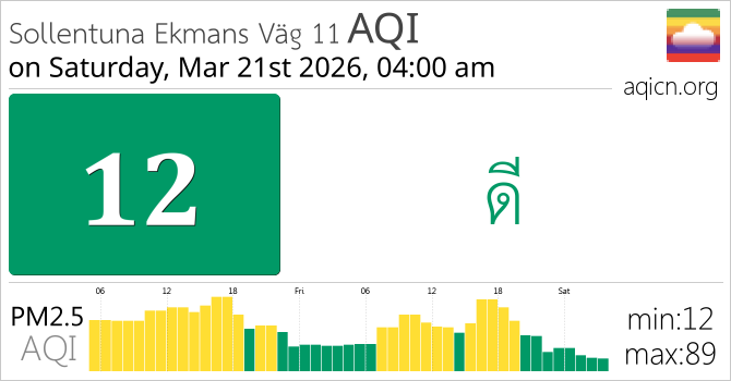 คุณภาพอากาศของ Sollentuna Ekmans Väg 11, Sweden อยู่ที่ ดี