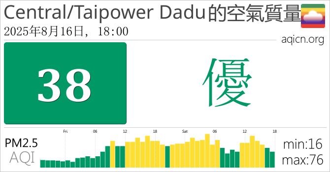 台灣Central/Taipower Dadu的空氣污染指數是優