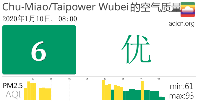 台湾Chu-Miao/Taipower Wubei的空气污染指数是优