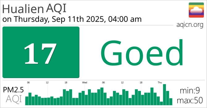De luchtkwaliteit van Hualien, Taiwan is Goed