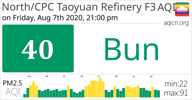 Calitatea aerului din North/CPC Taoyuan Refinery F3, Taiwan este Bun