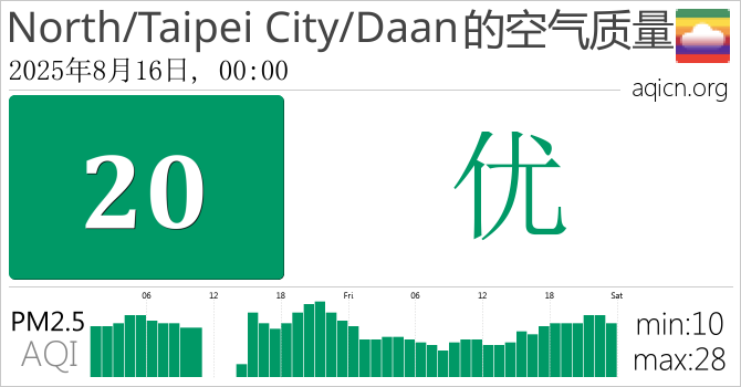 台湾North/Taipei City/Daan的空气污染指数是优