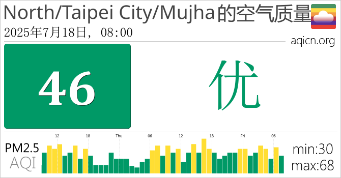 台湾North/Taipei City/Mujha的空气污染指数是优