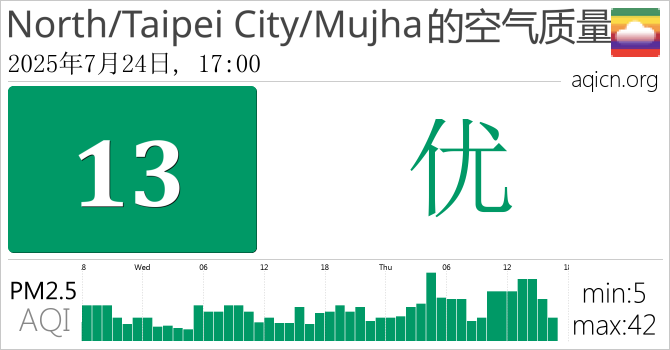 台湾North/Taipei City/Mujha的空气污染指数是优