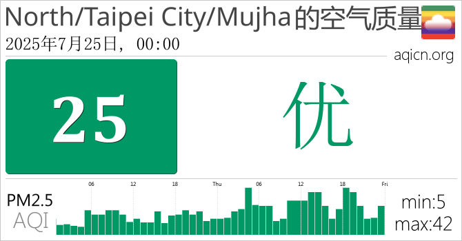 台湾North/Taipei City/Mujha的空气污染指数是优