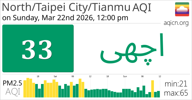 North/Taipei City/Tianmu, Taiwan کی ہوا کا معیار اچھی ہے