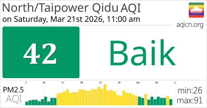 Kualitas Udara di North/Taipower Qidu, Taiwan adalah Baik