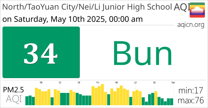 Calitatea aerului din North/TaoYuan City/Nei/Li Junior High School, Taiwan este Bun