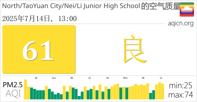 台湾North/TaoYuan City/Nei/Li Junior High School的空气污染指数是良