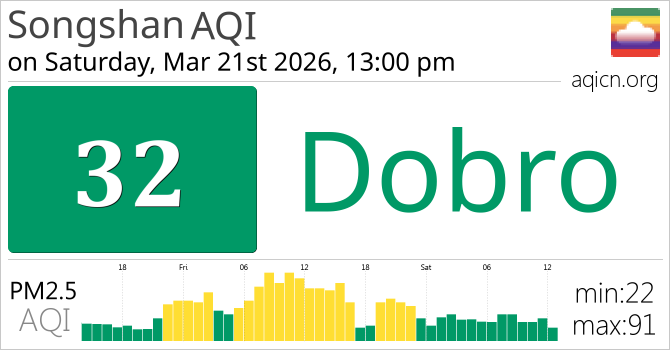 Kvaliteta zraka u gradu Songshan, Taiwan je Dobro